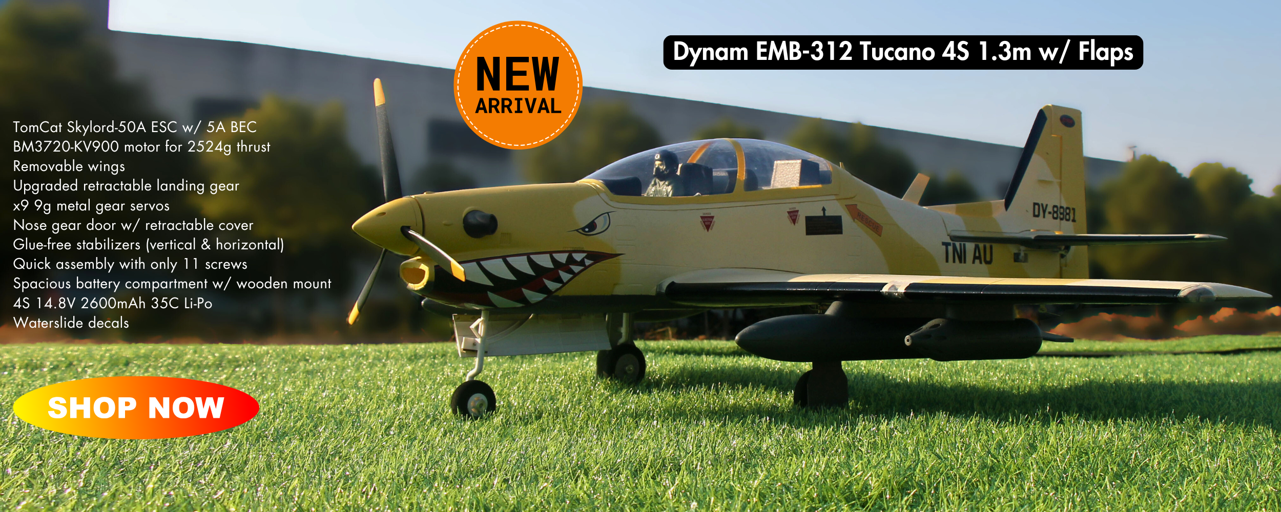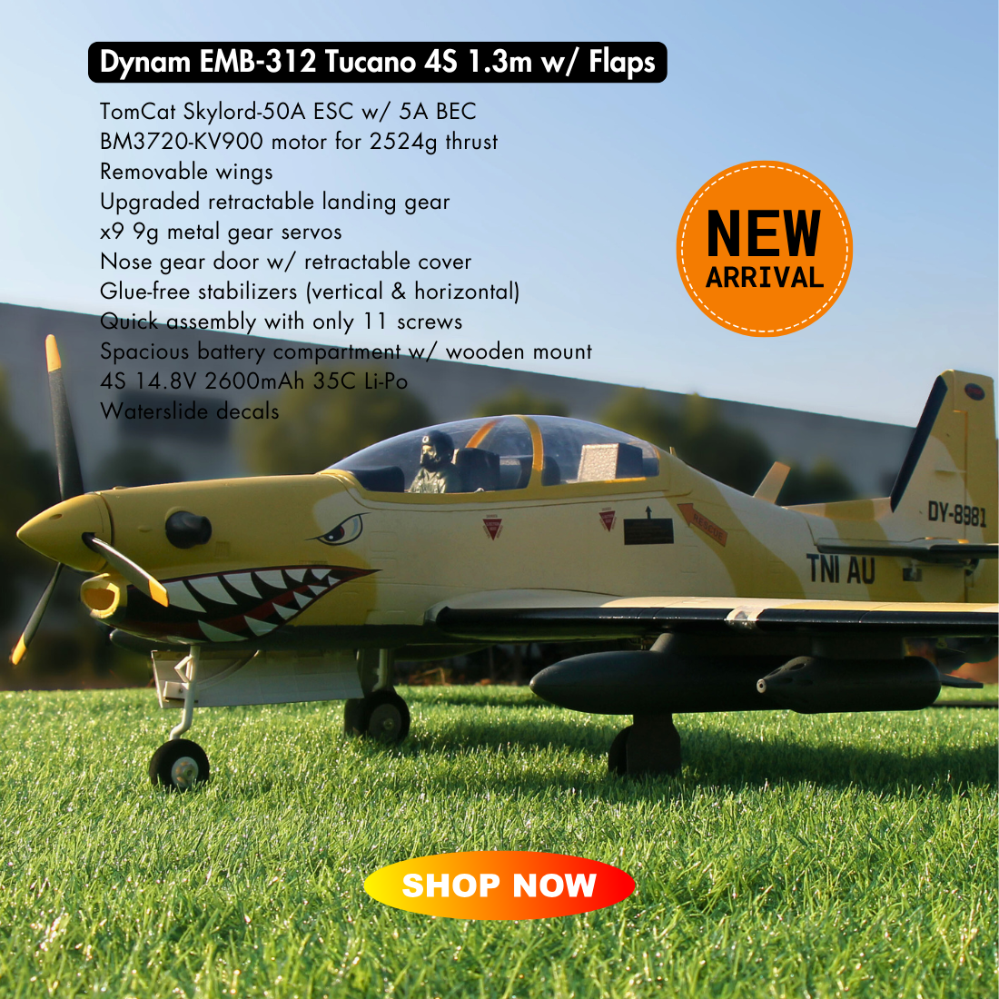 Up to £10 offVendor:Dynam RC UKDynam EMB-312 Tucano 4S RC Scale Plane 1.3m Wingspan w/ Flaps