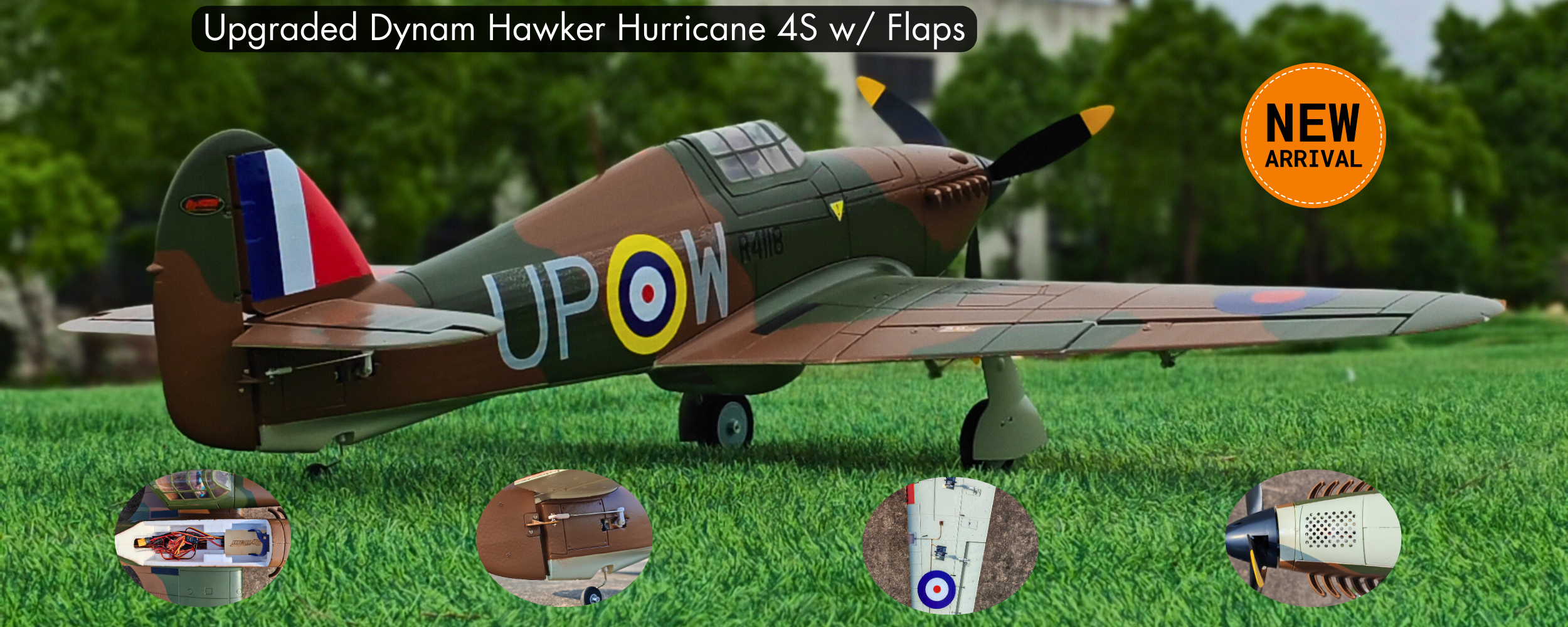 Vendor:Dynam RC UKDynam Hawker Hurricane V3 4S RC Warbird 1250mm Wingspan w/ Flaps