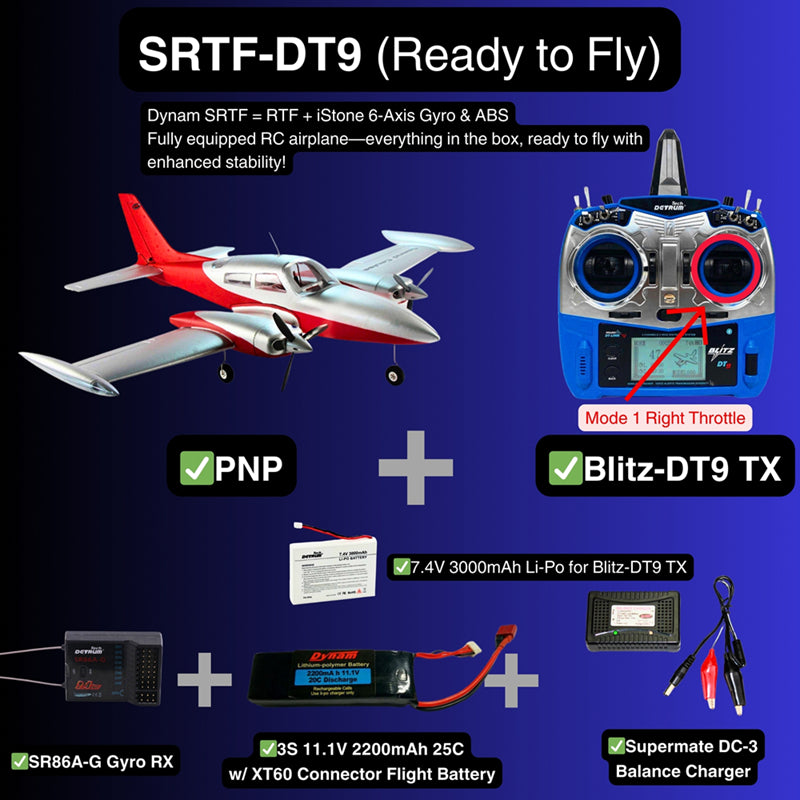 Dynam SRTF-versionen er baseret på standarden RTF (Ready to Fly), som integrerer iStone 6-Axis Gyro Stabilizer med ABS-system: RC-fly får alt i en kasse for at flyve. Radiosystemet (sender og modtager), batteripakke (batteri og oplader) og alle andre nødvendige elektriske dele er inkluderet og præinstalleret. Den indeholder modelbyggesæt, Detrum-motorer, TomCat Skylord ESC'er, servoer, Detrum-sendere, iStone gyro-modtagere, batteri, oplader og adapter. RTF-fly er en fantastisk måde at nyde spændingen ved at flyve uden for meget besvær.