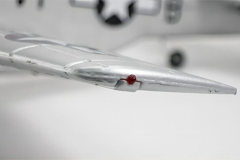 Realistiske detaljer, herunder tegninger af den amerikanske hær fra 2. verdenskrig, håndmalet pilotfigur, kanontårne og støbte panellinjer.