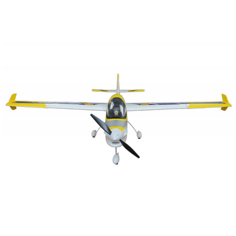 Trehjuls landingsudstyret og næsehjulsstyringen gør taxiing og landing let og behagelig. Vingedesignet på vingespidsen forbedrer flyveegenskaberne. Vingerne er fastgjort med kulstofrør og plastikbeslag, som er solidt forbundet og nemme at skille ad og samle. Brug et 4S 2600mAh lithium-polymerbatteri for at give større fleksibilitet og længere flyvetid.